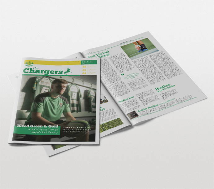 At 289 x 380mm, this digital tabloid size is perfect for impactful visuals and legible text. Each page features a 15mm margin at the top, bottom, and outside edge, ensuring a clean and professional layout. Tailor your publication with flexibility, choosing from a minimum of four to a maximum of 64 pages, in multiples of four, to suit your content needs.