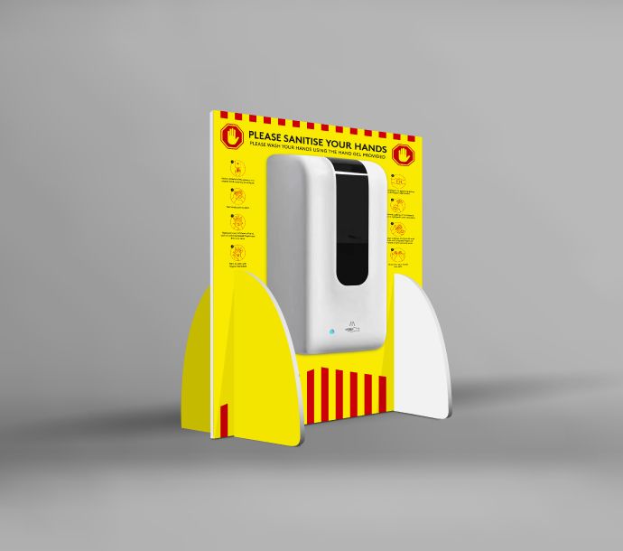 The A3 board that the dispenser to can feature a design of your choice. We have prepared our own which instructs people of the correct technique to use sanitising gel which you are welcome to use, or alternatively you can upload your own artwork for us to print. We will dispatch your order with free and fast delivery to anywhere in the UK, and will also include four C batteries that the dispenser will require to operate.