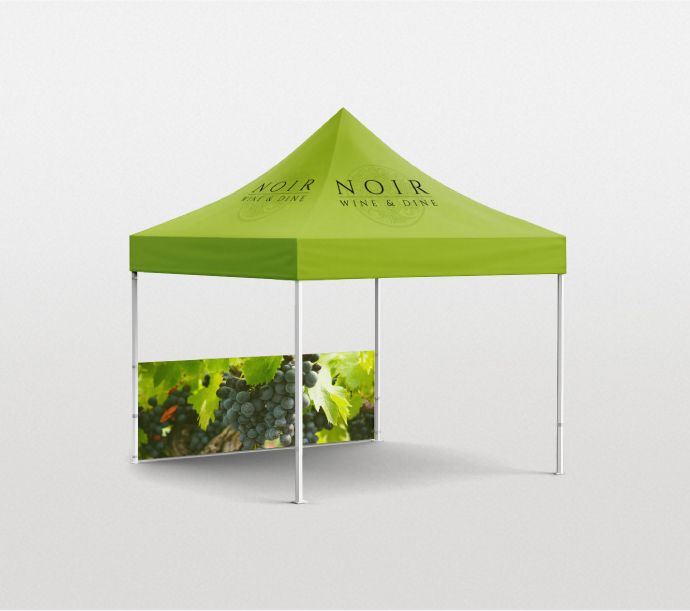 If you're serving customers from the front of your Gazebo, you can display your half-wall banner facing outwards across the front two legs to attract customers, define your counter area and put your brand front and centre.